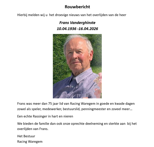 K. Racing Waregem is een Belgische voetbalclub. De club is aangesloten bij de KBVB met stamnummer 3302. De ploeg werkt zijn thuiswedstrijden af in het Mirakelstadion in Waregem. De club speelde vele jaren in de provinciale reeksen, in de schaduw van KSV Waregem en later SV Zulte Waregem, maar klom in het begin van 21ste eeuw toch op in de nationale reeksen en speelde zelfs 1 seizoen in Tweede Klasse.
